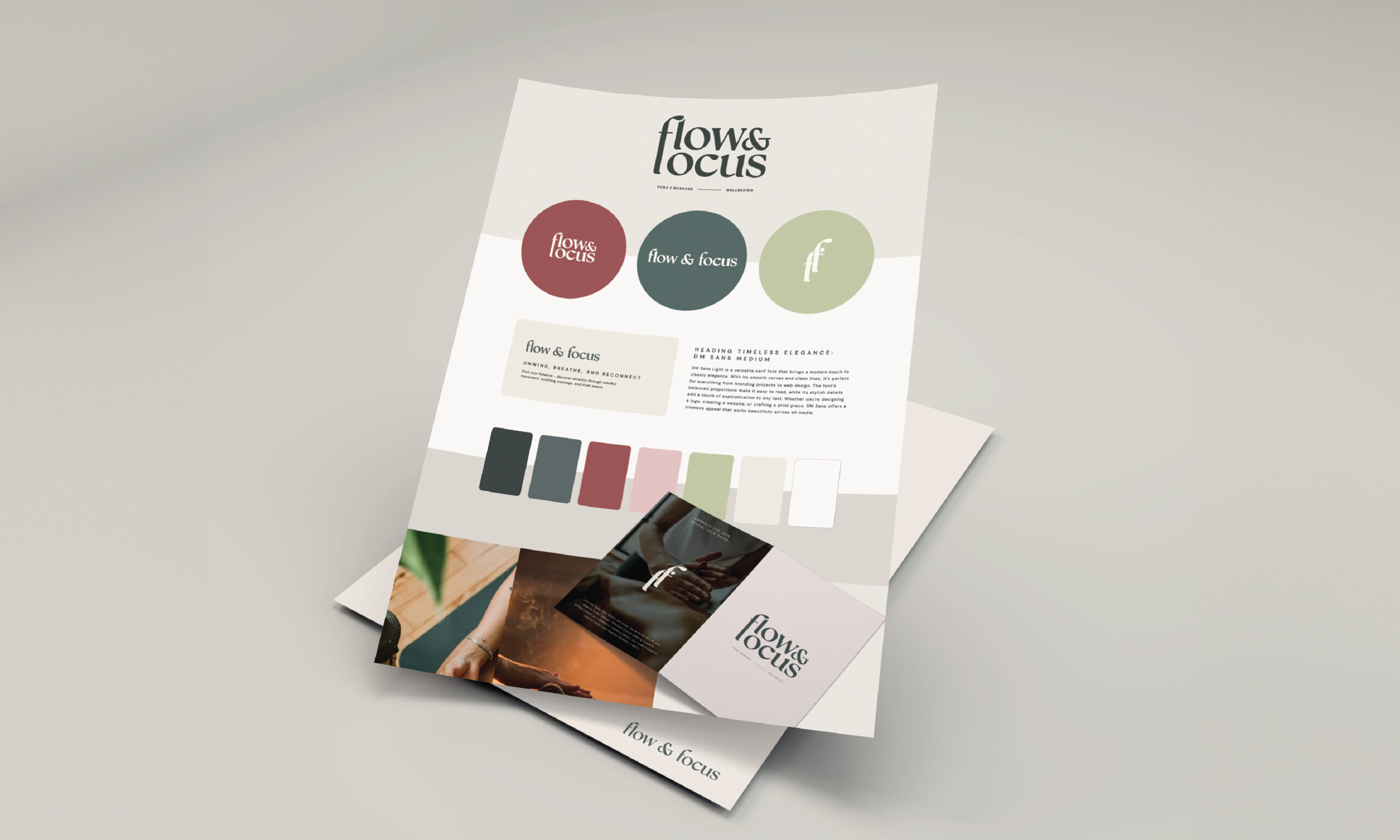 The branding for Flow and Focus was designed to reflect the balance between mindfulness and energy. The flowing logo mirrors the movement and breath in yoga, while the peaceful yet invigorating colours create a sense of harmony and well-being. This combination ensures that Flow and Focus’s branding resonates with those seeking both calm and vitality in their practice.