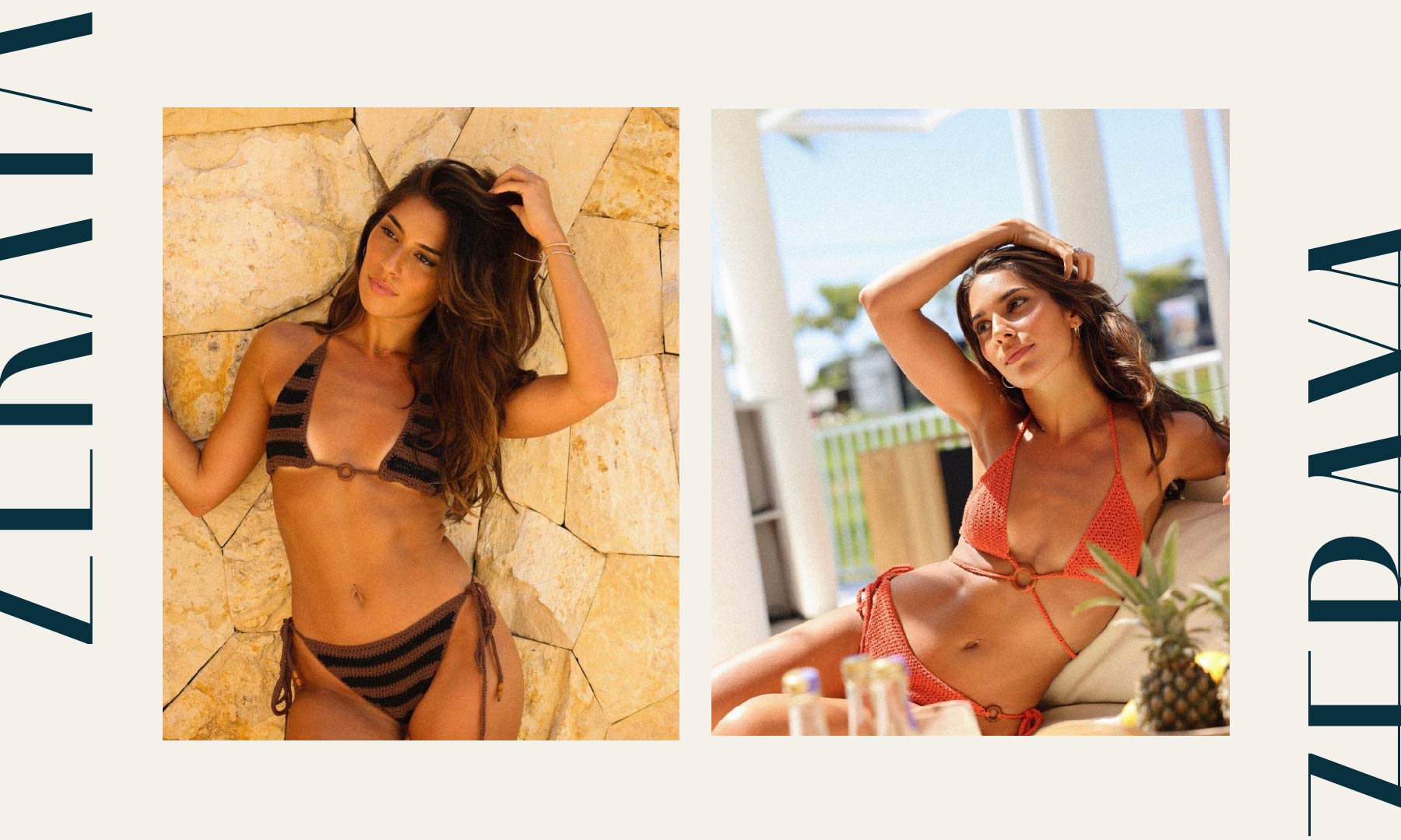 Zeraya is a bikini brand born in Bali, infused with the island’s fresh, tropical vibe. The brand’s identity features a blend of turquoise and deep blue, capturing the essence of the sea. The strong, pointy logo, combined with clean graphics and a wave-inspired brandmark, creates a cohesive and striking visual experience.
